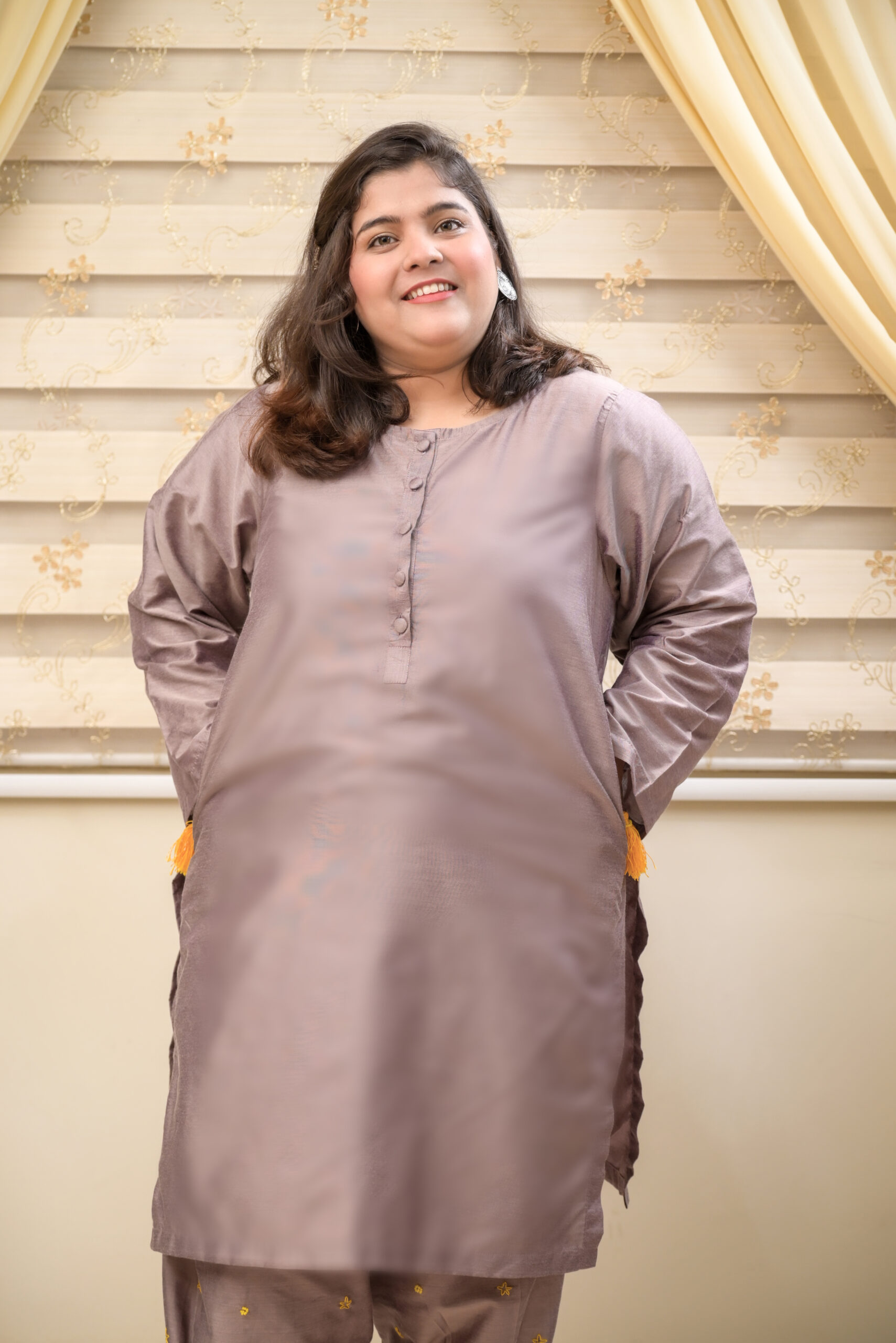 Make your special occasions even more memorable with Rubaru. This elegant 2-piece suit features an aesthetic pocket kurta adorned with hand embroidery, paired with a classic embellished shalwar. A perfect balance of sophistication and charm, ensuring you stand out with effortless grace.