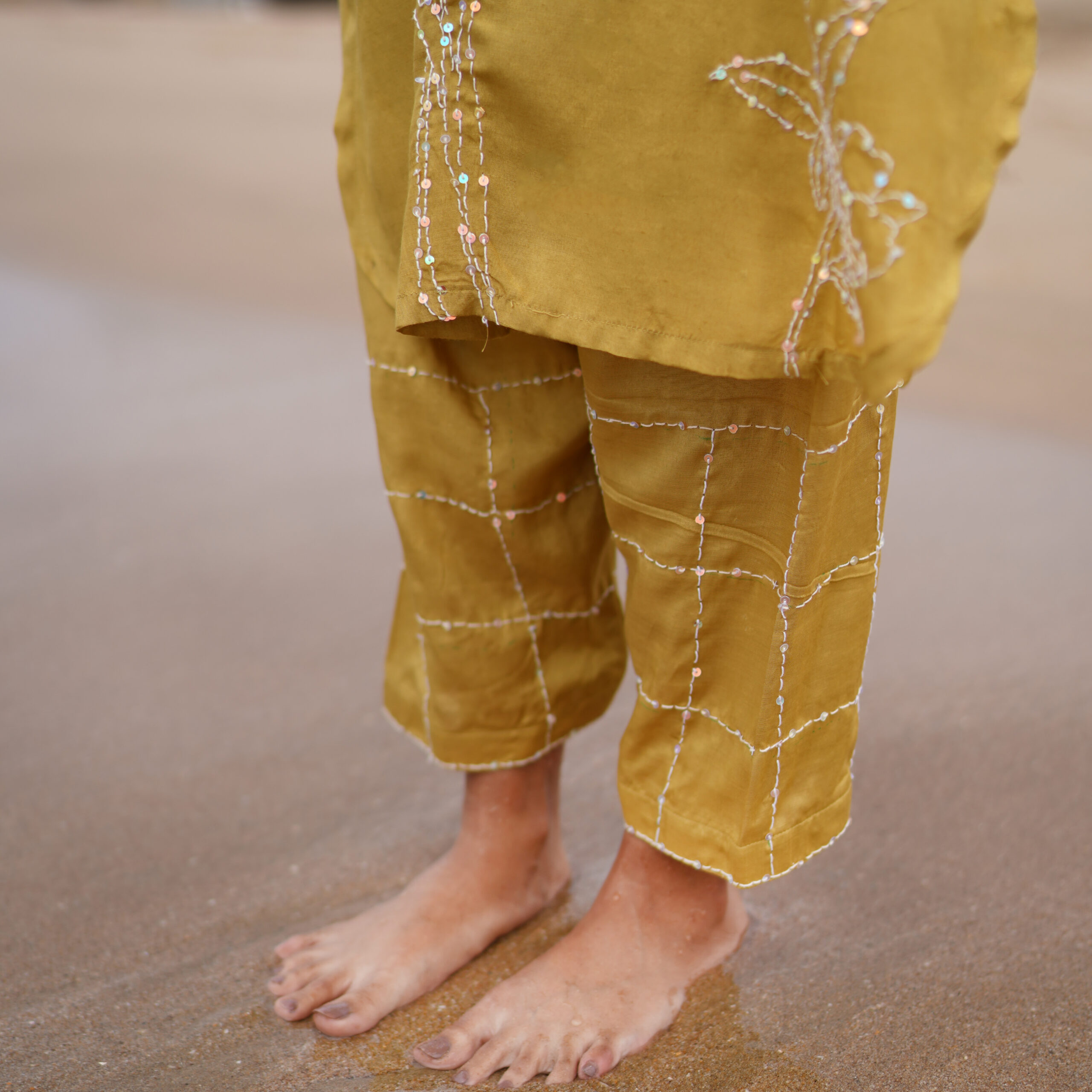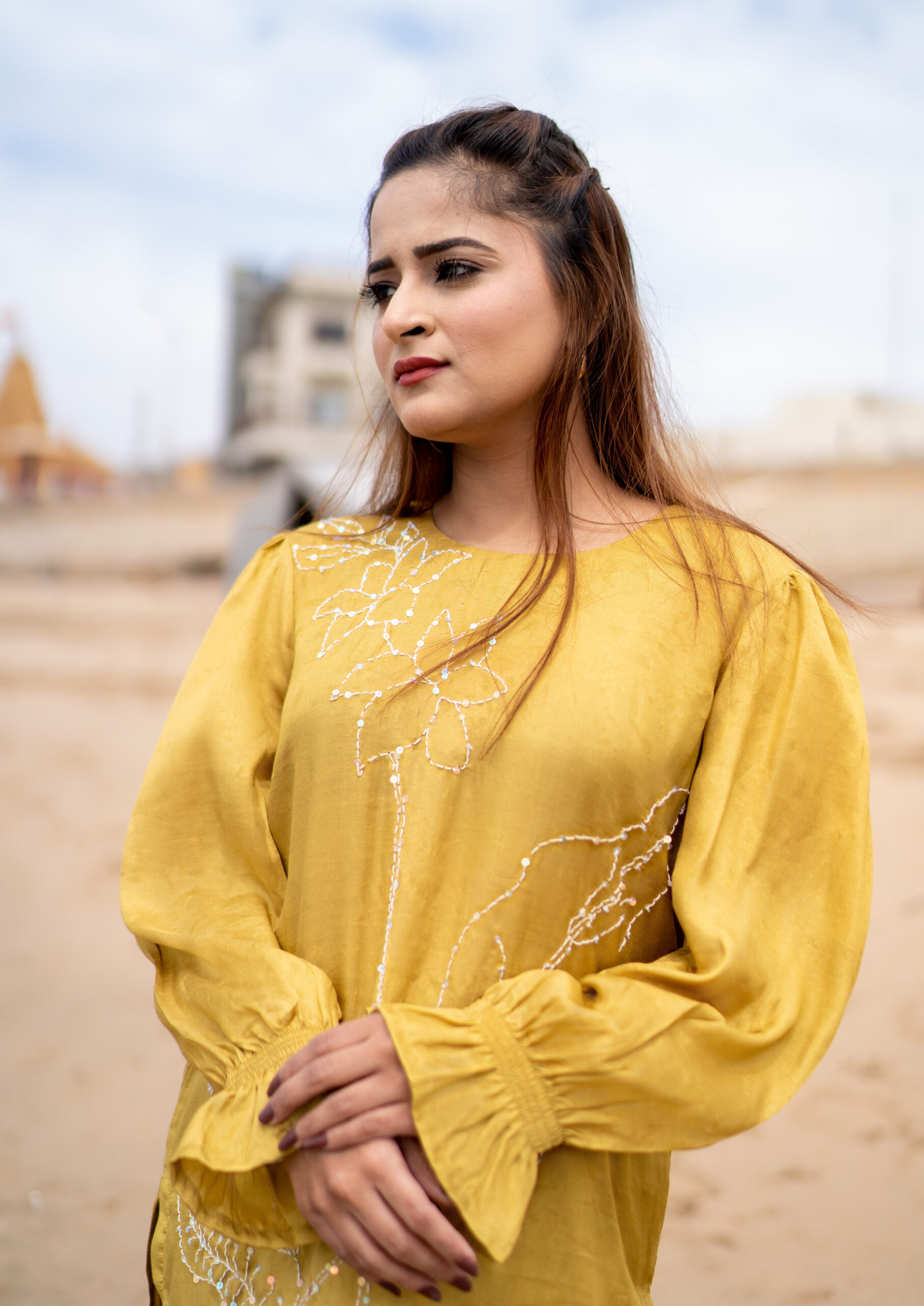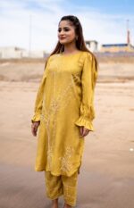 Inspired by the timeless charm of “Ye Shaam Mastani,” this ensemble radiates elegance and grace. Crafted from breathable cotton silk and adorned with delicate hand embroidery on the shirt and shalwar, it’s a perfect blend of sophistication and comfort.